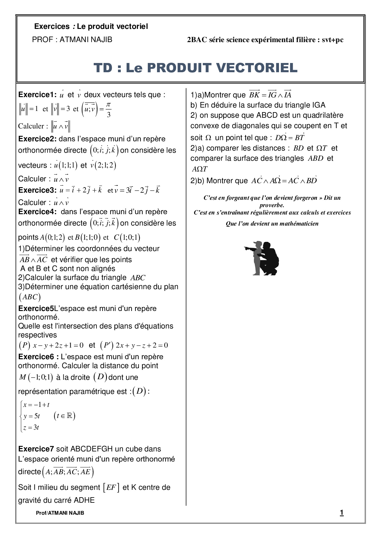 Produit vectoriel Cours et exercices corrigés AlloSchool
